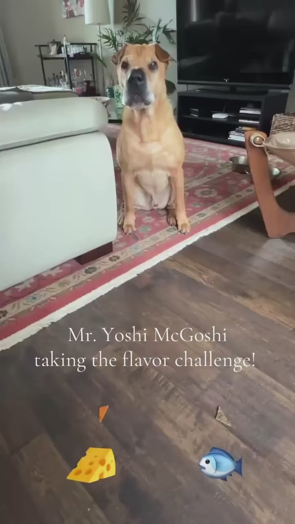 We start off with roasted sweet potatoes and add cheddar cheese for this all human-grade ingredient treat. Crispy & cheesy, just like your favorite fish shaped snack, but formulated for your furry pal! This is a treat that will have you both drooling because they smell just as good as your pup will tell you they taste!